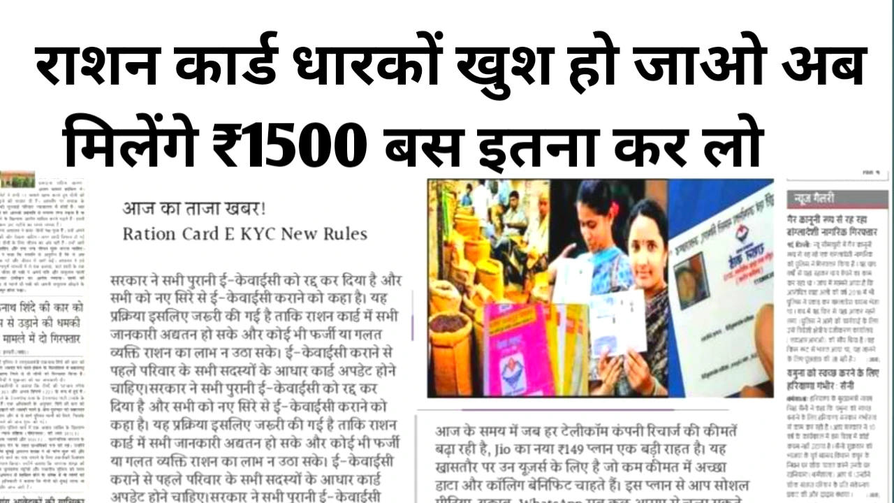 अगर आप भी राशन कार्ड धारक हैं तो तुरंत अपनी eKYC और आधार लिंकिंग जांच लें ताकि ₹1500 की सहायता राशि समय पर आपके खाते में पहुंच सके।